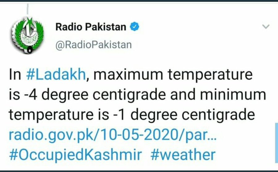 India’s Meteorological Department’s recently started the weather broadcast of Gilgit-Baltistan and Muzaffarabad a part of Pakistan-Occupied Kashmir. To counter India’s move Radio Pakistan tweeted with a maximum and minimum temperature of Ladakh with a major gaffe.